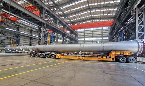 萬(wàn)德化學(xué)(東營(yíng))有限公司拔頭油分離塔設(shè)備出廠運(yùn)輸